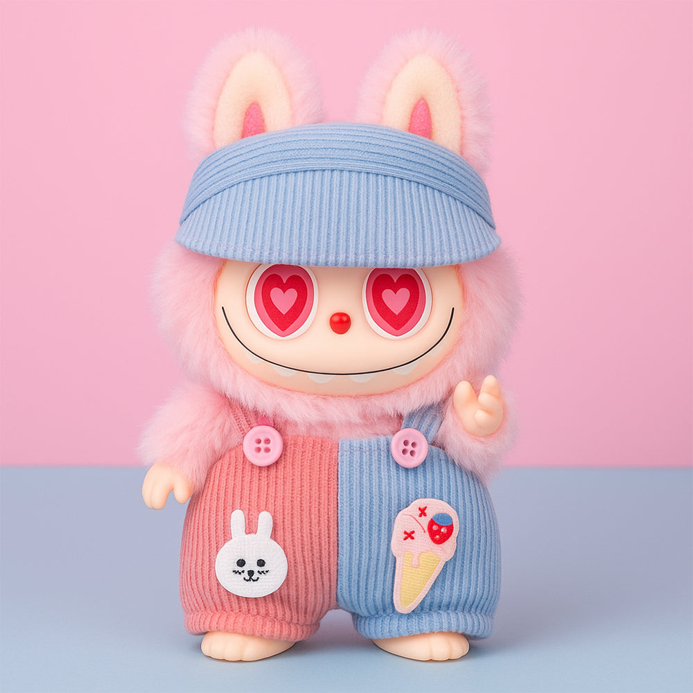 Labubu Bunny Meadow Outfit – Corduroy Overalls & Visor Cap